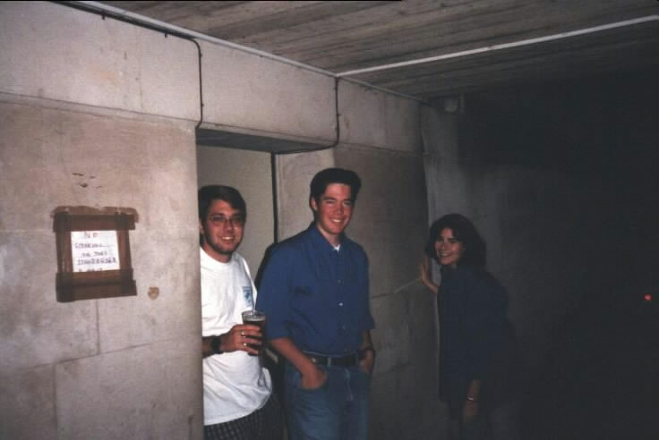 These are my friends John, Bryan, and Susan at Brasenose College. John appears to be holding a Guinness.