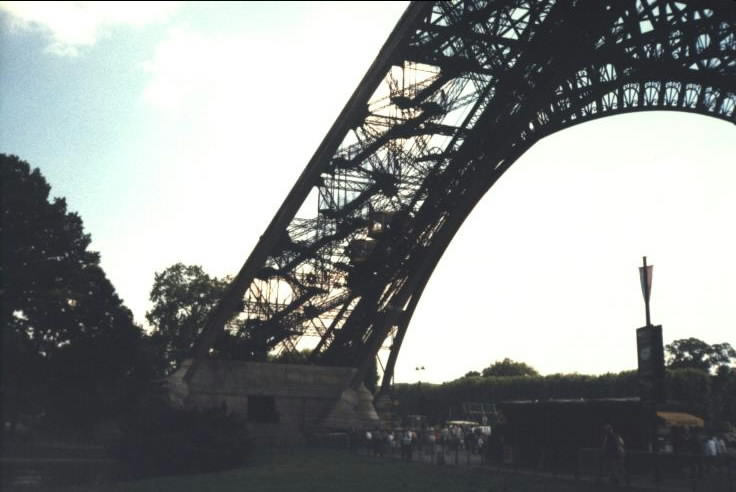 This is a leg of the Eiffel Tower. Although it seems small in photographs, when you're directly underneath it, the Eiffel Tower is very, very big.