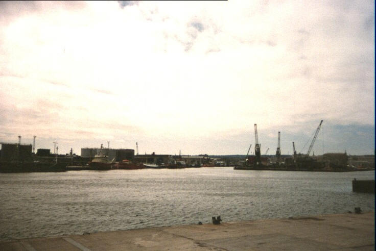 This is the busy harbor of Aberdeen, which opens directly into the North Sea.