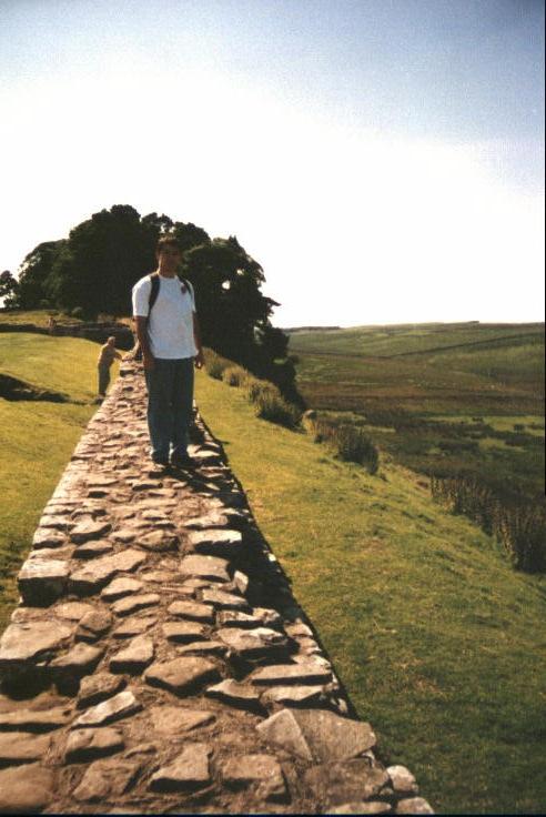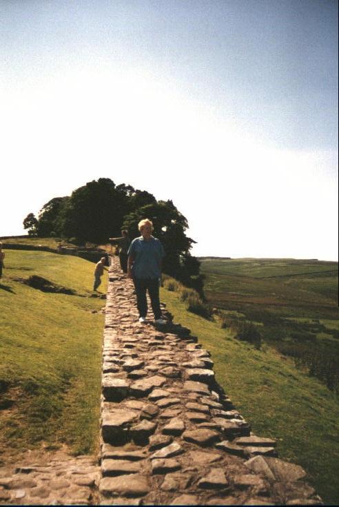 Myself and my mother, respectively, standing atop Hadrian's Wall.