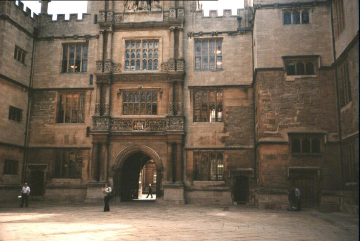 A view from the courtyard of the Bodlien Library. The second and third floors contain reading rooms. Most of the books of the library are beneath the city.